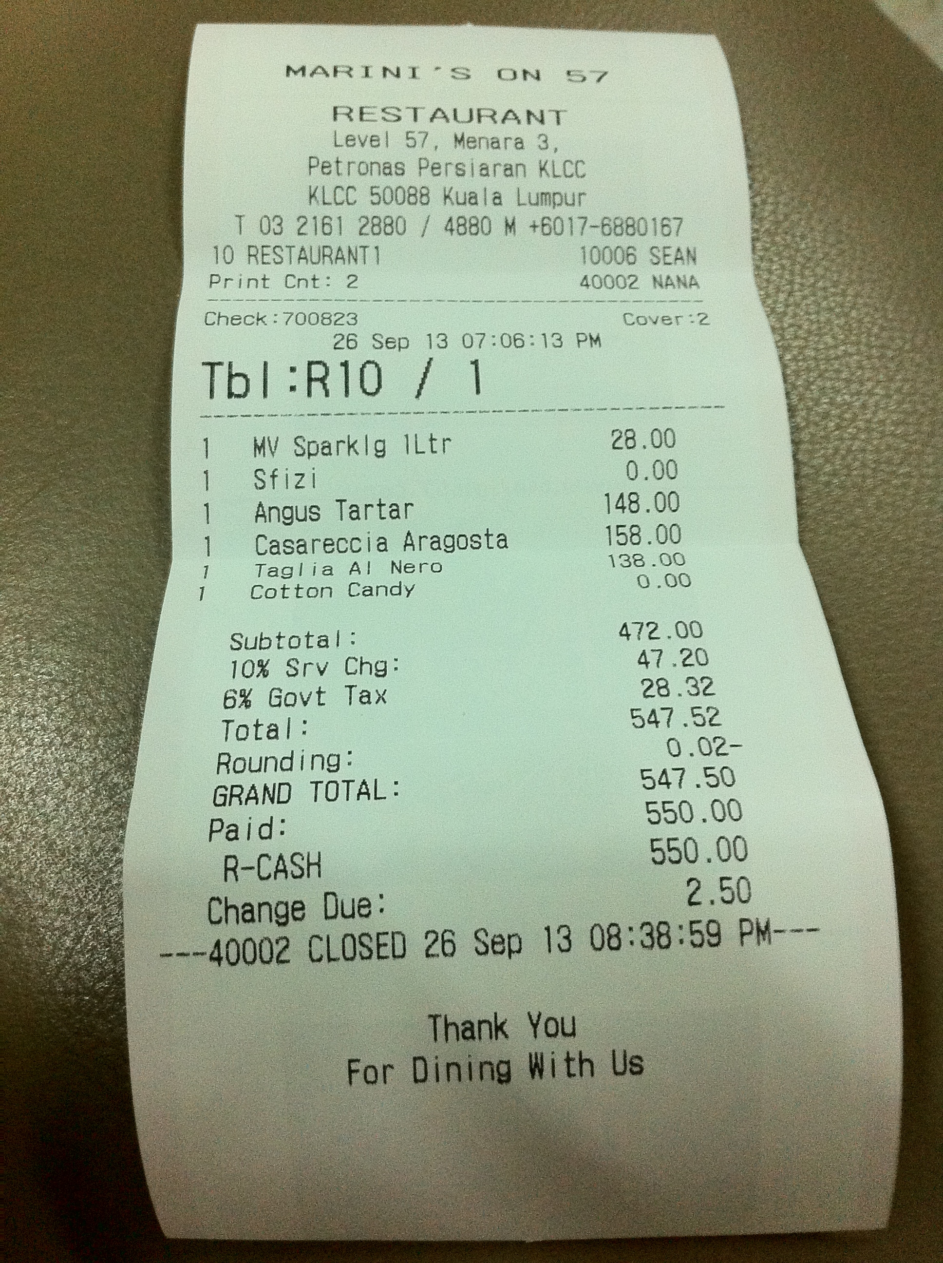 Hubs turned 36 last week, so I wanted to treat him something special and finally decided on Marini’s on 57. Little did I know, I ended up paying for my most expensive meal ever! (at least so far :P) All we ordered was just an appetizer, 2 pastas and a bottle of sparkling water. And guess how much do I have to pay for it?!