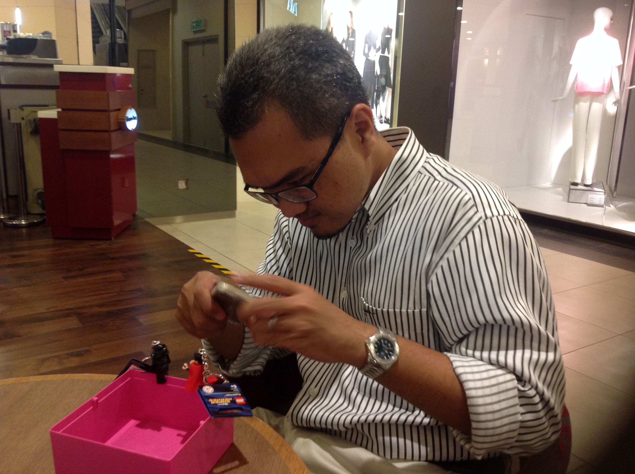 After Lego, we decided to stop for dessert and that was when he suddenly got the idea to be “creative” with his newly purchase Lego figurines. Hehehe…actually this is not the first time CheeseBoy tried to be creative with Lego. Here is another picture when he was so called being “creative” with Lego figurines 😛