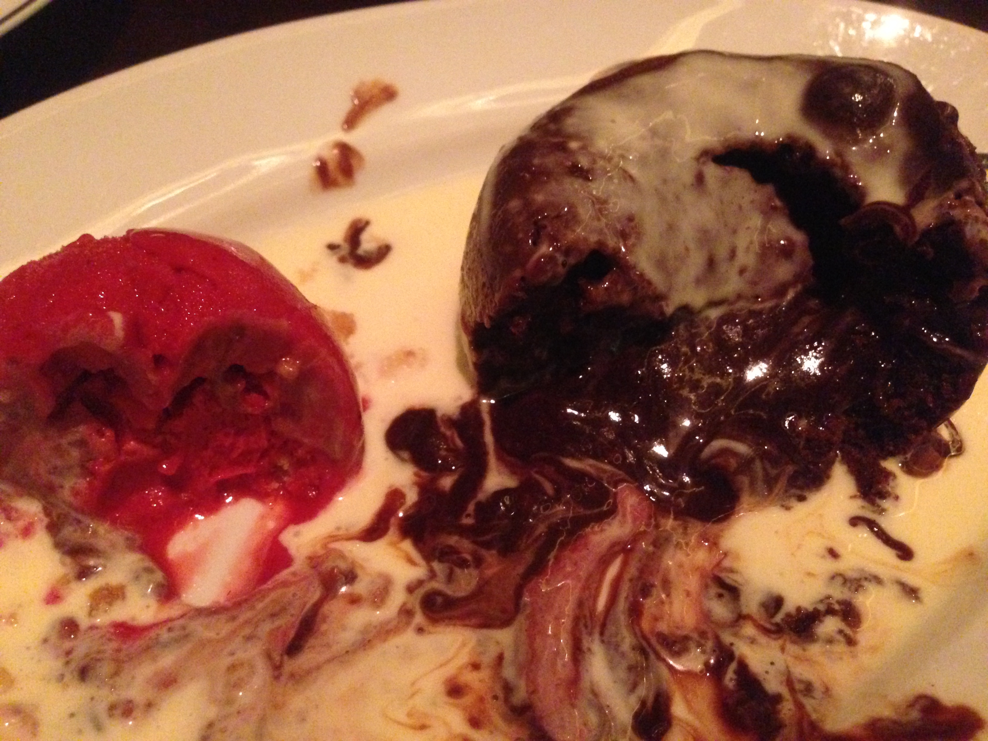 We ordered the two most popular desserts served. Left is the THIRTY 8 Signature Cake, whilst right is Straight from the Oven chocolate cake, with rasperry sherbet and vanilla anglaise sauce.