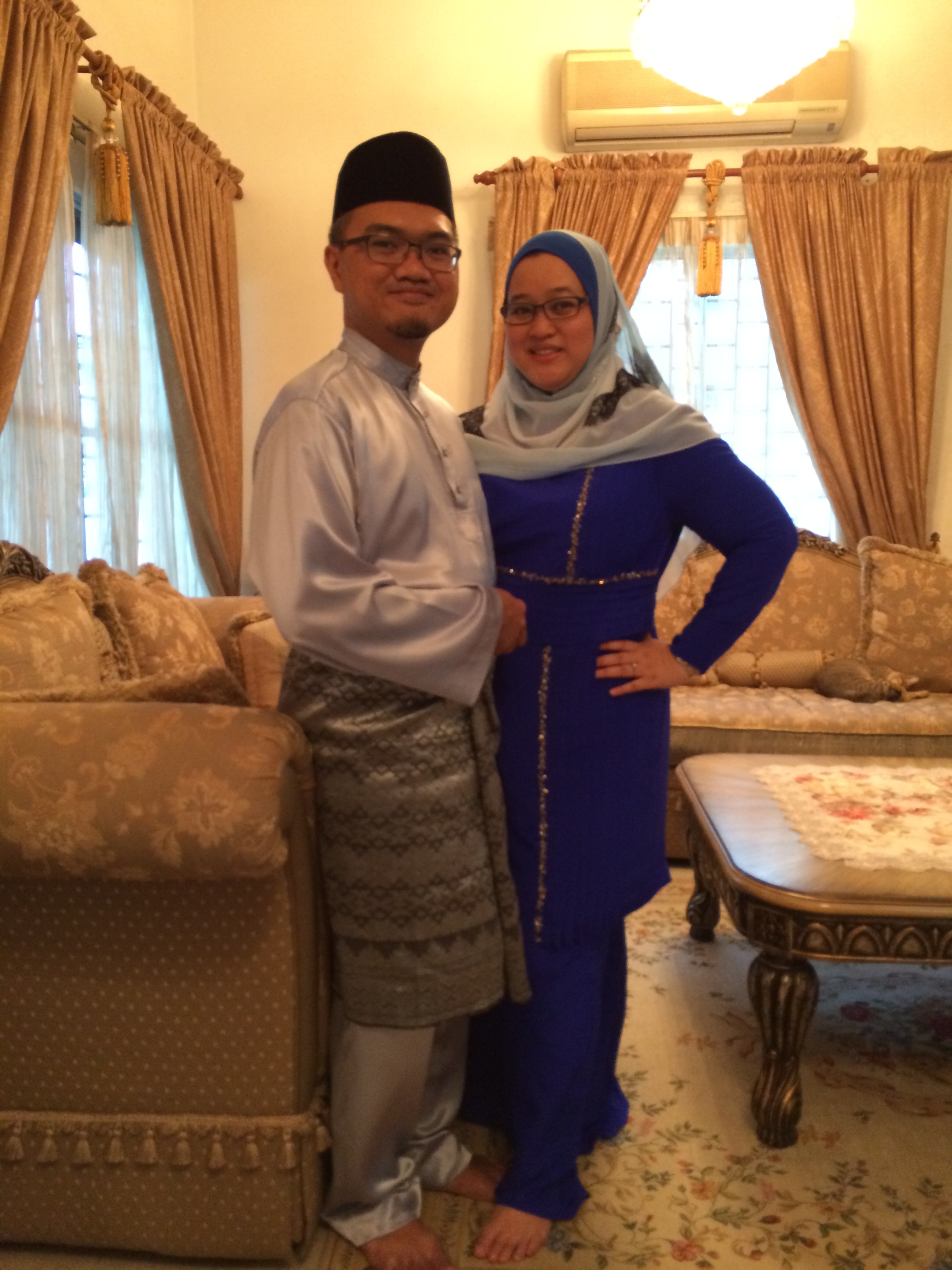CheeseBoy and I never really worn too matching-matching outfits. We either wear same shades but in different tones or we will just complimentary colour. He wore grey by the way. So whatever colour I pick will never be an issue for him. He has quite a number of baju melayu in his collection. Hehehehe…Yup from someone who wore the same black baju melayu for years before his marriage to someone who has baju melayu in almost every shades (But I think he needs to start making new ones next year)