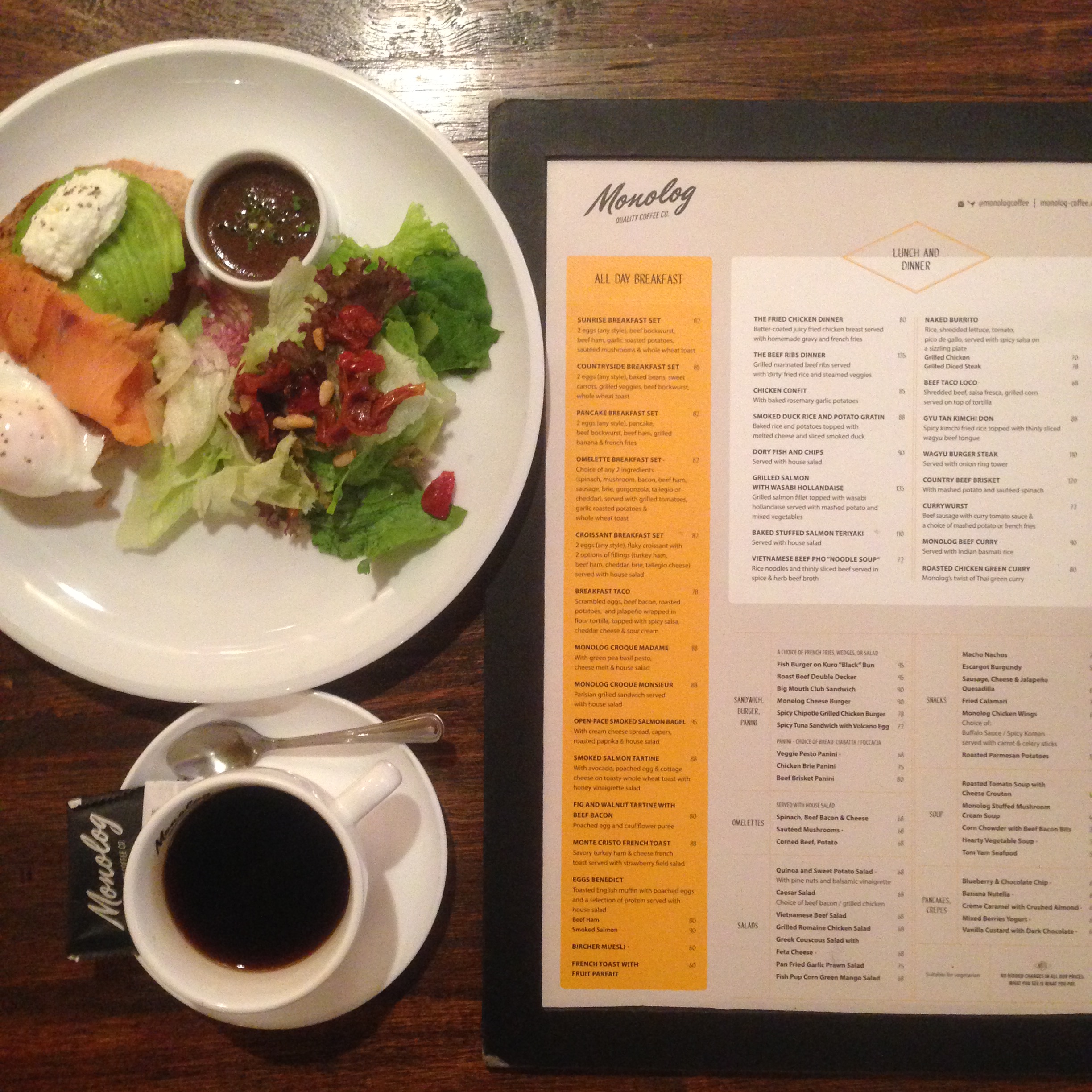 First day there we went to have early breakfast at this cafe called ‘Monolog’ at Plaza Senayan. It has a really cool ambiance to chill, with decent pastries and extensive menu. The breakfast selection (mostly western style) was quite good. Their coffee is excellent too. Very useful to wake a sleepy CheeseBoy up. 🙂 Check out the pics below: