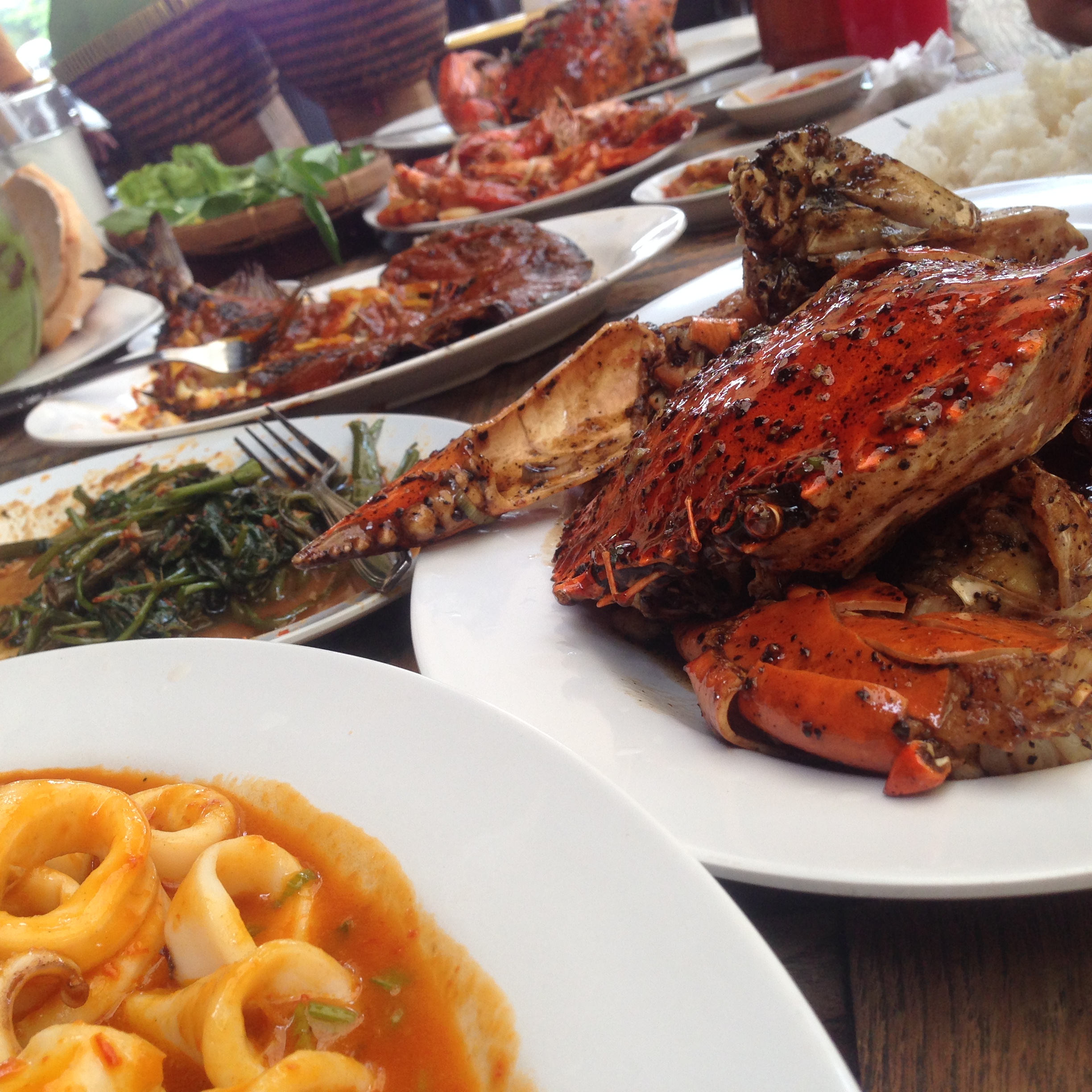 After all the coffee places, we were craving for some REAL food. (You know… The type of food that we actually eat with our fingers, instead of forks and spoons?) Our gracious hosts took us to Ancol, which is like a big theme park with all sorts of attractions. There’s a zoo, parks, roller coasters, even a beach! Settled nicely within the Ancol compound was this gem of an eating place called Bandar Djakarta. (Bandar Djakarta, Jakarta? Sounds like New York City, New York) At this place you can pick really fresh (I mean still-alive-type-of-fresh) fish, crabs, prawns, weird shellfish we’ve never seen, and many more! Honestly, we’ve never been so full! Guess what? A meal for 5 people costs only about RM200! Ridiculously cheap for seafood feast. Only in Jakarta!