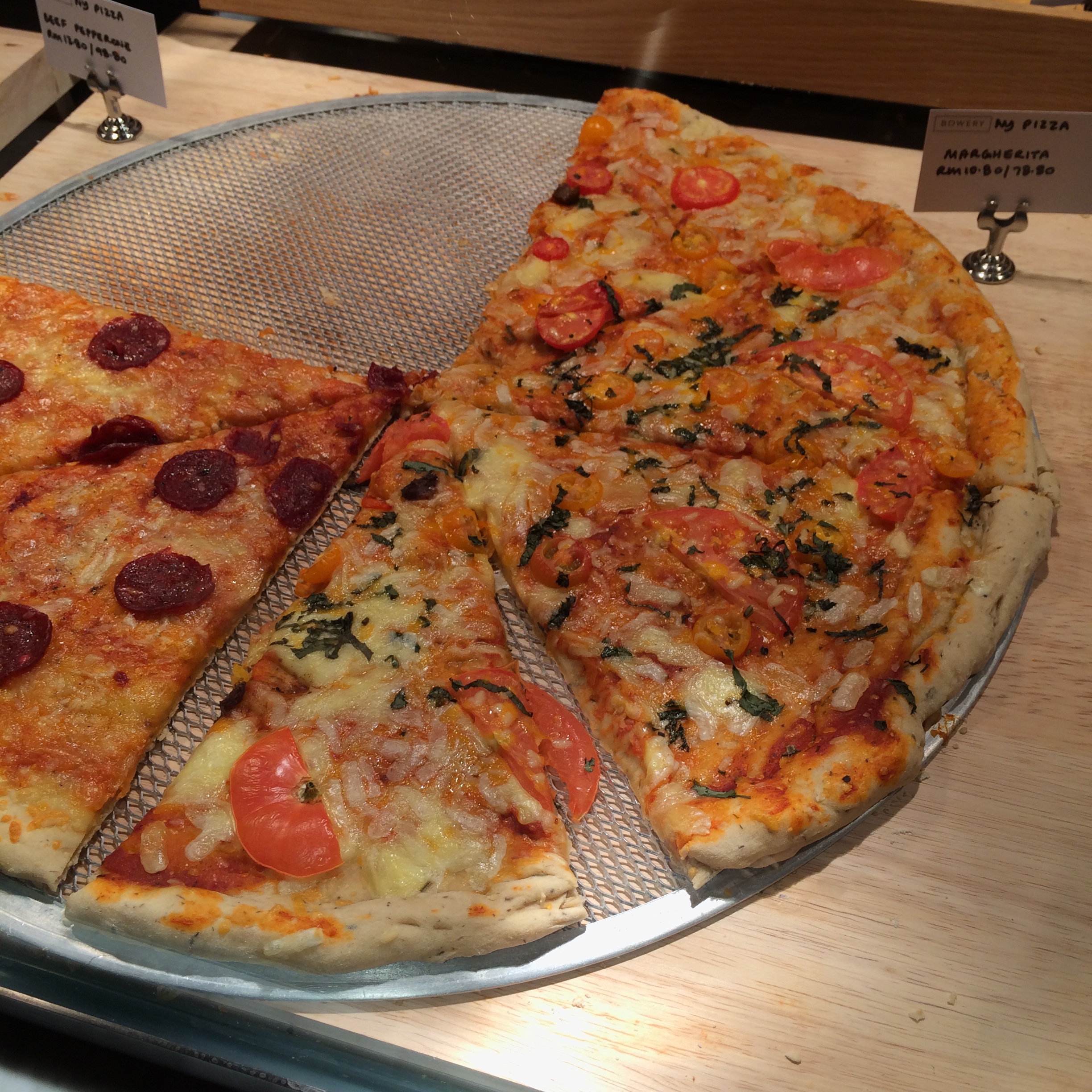 Okay, how about the food? One of the things we’ve discovered is that they serve New York style/inspired pizzas! (And Cheeseboy definitely loves his pizzas) It was great to see a bunch of pizza pies, with various flavours and styles. And they sell by the slice, so it’s easier on the wallet.