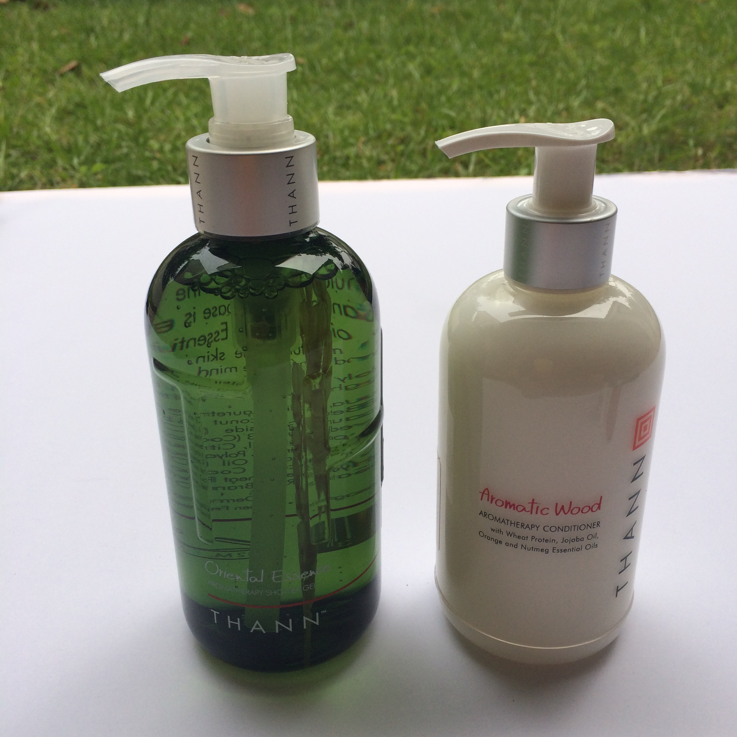 The green bottle is THANN Oriental Essence Aromatherapy Shower Gel which is specially formulated to optimize the skin’s natural moisture balance. It is a 100% botanical derivative base enriched with the benefits of plant essential oils. The two main ingredients are Kaffir Lime oil and lemongrass oil.