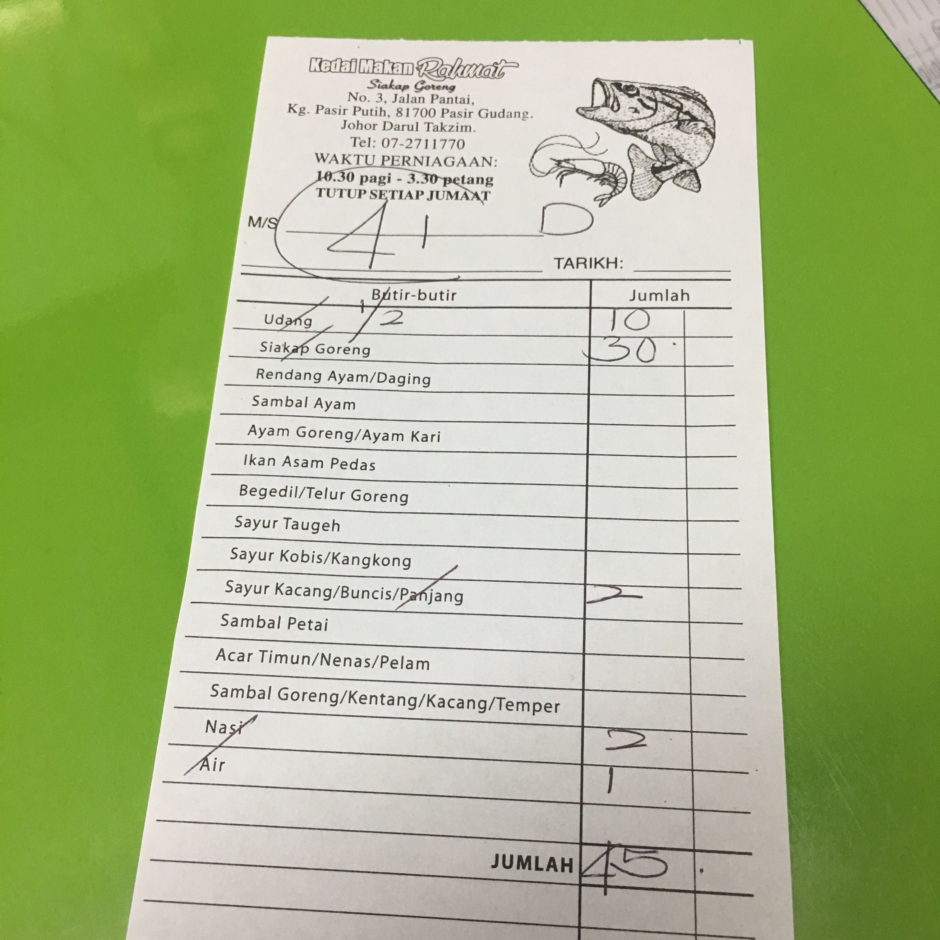 Despite being stuffed with all the good food, I decided to be crazier and by making our move straight to a place recommended by our cousin called “Kedai Makan Rahmat” which located in Pasir Gudang and their specialty is Siakap Goreng (deep fried sea bass).
