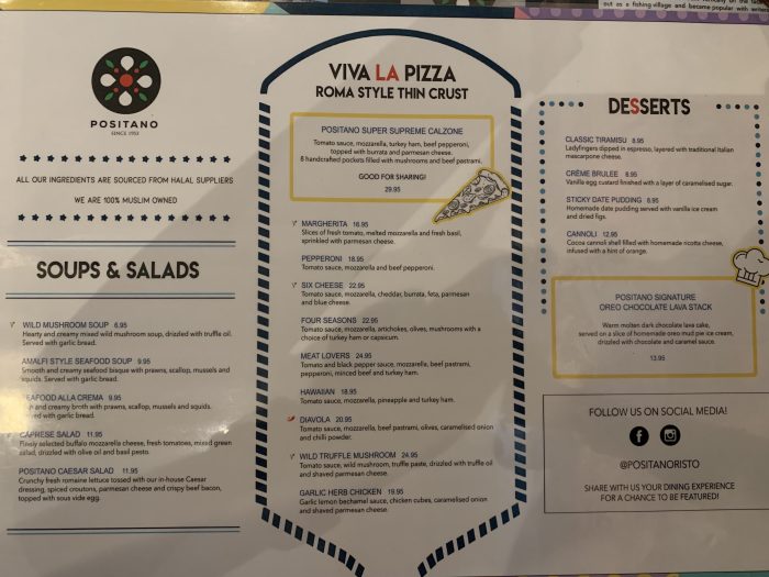 Our last trip brought us to the Arab Street area. We’ve never paid much attention to that area, except to eat Zamzam briyani or their famous murtabaks. But being the ‘intrepid’ explorers we are, we went to Haji Lane and Bussorah Street. This area is just packed with cool shops and restaurants. (A lot of halal restaurants to eat) Tired of eating briyani and rice dishes, we decided to stop by a highly rated halal Italian restaurant called ‘Positano Risto’. Check out the dishes we had ordered below: